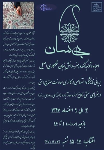 در این نمایشگاه که به همت معاونت صنایعدستی سازمان میراث فرهنگی، صنایع دستی و گردشگری توسط گروه «بیسان» از تاریخ 4 تا 9 اسفند ماه سال جاری برگزار میشود، آثار قلمکاری اصیل ایرانی با کاربریهای متفاوت، مطابق با سلیقه و نیاز امروز برای علاقمندان به نمایش گذاشته میشود.