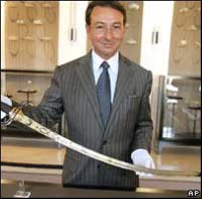 حراج کنندگان امیدوارند با فروش آن میلیون ها دلار به جیب بزنند. طول شمشیر نزدیک به یک متر و خمیده است.