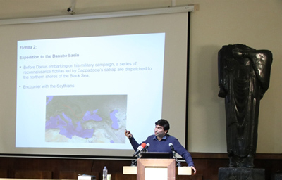 او به مطالعات انجامگرفته در مورد سکهشناسی در حوزه دریانوردی اشاره کرد و افزود: «نقوش منقوش بر روی سکهها به ما نشان میدهد که ناوگان هخامنشی از چه اجزایی تشکیل و چگونه سازماندهی شده است.»