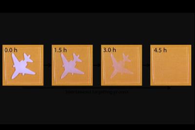 سپس این ژل به یک ظرف آب گرم منتقل شد که باعث شد قسمت در معرض دمای این هیدروژل با جذب آب و تورم واکنش نشان دهد، در حالی که بقیه ژل بی تأثیر ماند. سپس هنگامی که این ژل بلافاصله دوباره در آب سرد قرار گرفت، آن مناطق متورم شدند و به لطف پدیده ای به نام "سرخوردگی ساختاری"(structure frustration) به شکل مات و مرئی درآمدند که باعث شد اشکال یا حروف دوباره دیده شوند.