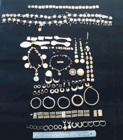 او افزود: «ضمن رعایت موازین شرعی و قانونی در بازرسی از منزل یکی از قاچاقچیان اشیای عتیقه ۲۷۸ قلم شیء تاریخی از جنس طلا شامل گوشواره، آویز، حلقه، گل سینه، مدال، انگشتر، پلاک، سگک کمربند، سینهریز و ... کشف و ضبط شد.»