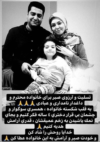 ▫️به قلب شکسته خانواده، همسری سوگوار و چشمان بی قرار دختری چهار ساله فکر کنیم و به جای نمک پاشیدن به زخم عمیقشان، قدری آرامش هدیه کنیم. خدایا روحش را شاد کن و خودت صبر و آرامش به این خانواده عطا کن .»
