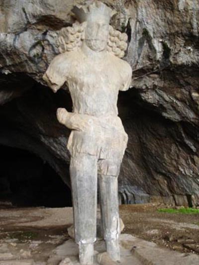 گفتني است غار شاپور در ادامه جاده اي که به تنگ چوگان وارد مي شود و پس از طي نمودن مسافتي نزديک به 6 کيلومتر در سمت چپ رودخانه و در ارتفاع 1280 متري سطح دريا قرار گرفته که تنديسي از شاپور شهريار پر آوازه ساساني به ارتفاع 30/6 متر در دهانه آن قرار دارد . در اين تنديس شاه با جامه اي ساده ، ظريف و لطيف با کمر بندي که به دور کمر بسته و شمشير حمايل کرده ، نشان داده شده است . دست راست تنديس بر کمر و دست چپ بر قبضه شمشير است . ريش شاه آرايش شده و از حلقه اي گذشته است . موهاي وي بلند و تاج کنگره داري بر سر دارد.