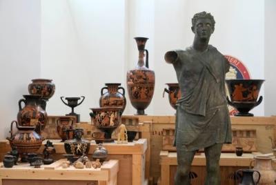 ایتالیا روز سهشنبه (۲۸ می ۲۰۲۴) حدود ۶۰۰ شیء تاریخی از جمله چند مجسمه برنزی باستانی، سکههای طلا، موزائیک و دستنوشتههایی به ارزش ۶۰ میلیون یورو (۶۵ میلیون دلار) را که سالها قبل غارت شده بودند و به موزهها، گالریها و مجموعهداران ایالات متحده آمریکا فروخته شده بودند را که در نتیجه تحقیقات جنایی بازیابی شدهاند از مقامهای ایالات متحده آمریکا تحویل گرفتند.