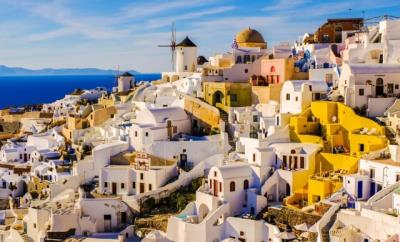 سانتورینی که به خاطر غروبهای مجذوبکننده و زیبایی طبیعی منحصربهفردش شهرت دارد، تخمین زده میشود ۸۰ هزار تخت هتل داشته باشد که این تعداد بدون در نظر گرفتن دو مقصد یونانی، در هر متر مربع بیش از هر مقصد گردشگری یونان است.