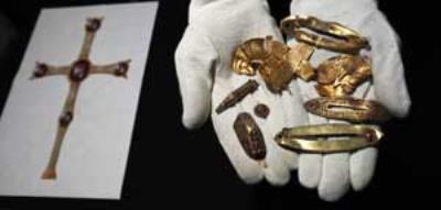 اين مجموعه، که تنها 18 نمونه از 1500 شي نقرهاي و طلايي آنگلوساکسونهاي بريتانيا است، متعلق به قرن هفتم ميلادي بوده و ماه گذشته توسط يک مزرعه دار انگليسي در منطقه استارفوردشاير کشف شده اند.
