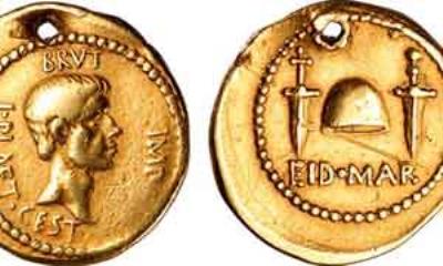 سکه‌اي طلايي که به افتخار قتل جوليوس سزار ضرب شده و به عنوان طلسم در دست يکي از قاتلان وي نگهداري شده بود، به مناسبت روز عيد ماه مارس در دو هزار و پنجاه و چهارمين سال مرگ سزار در موزه بريتانيا به نمايش درآمد.