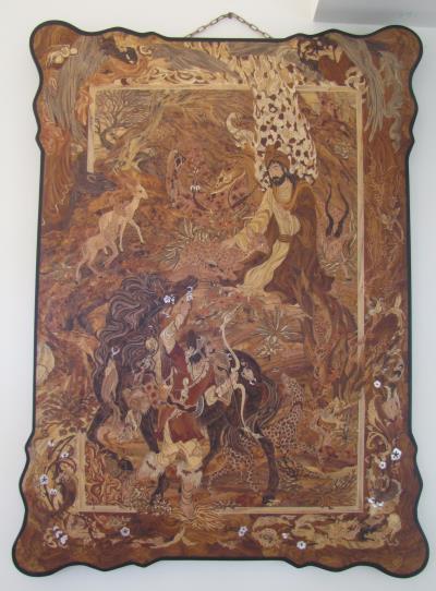 وی با اشاره به موضوع این اثر اظهار داشت : با توجه به مضمون این اثر و سالروز ولادت علی بن موسی الرضا (ع ) این تابلوی تمام معرق با زمینه چوب اثر سعید امیری از هنرمندان صنایع هنری چوبی با موضوع ضامن آهو در این موزه به نمایش گذاشته شده است .