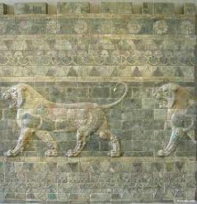 شايان ذکر است، اين کاخ داراي يک نقش شير است که يکي از آثار باستاني متعلق به دوران هخامنشيان، داريوش بزرگ است. آجرهاي اين اثر از آجرهاي قالبي ساخته شده و متعلق به ۵۱۰ سال پيش از ميلاد است که در موزه لوور نگهداري ميشود.