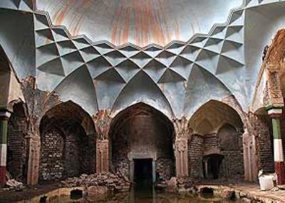 وي افزود: بررسيهاي انجام شده نشان ميدهد که فرم طاقها و گنبدها و ستونهاي سنگي شامل ته ستون، ساقه ستون و سرستون مقرنسکاري حکايت از شيوه معماري دوره قاجاريه دارد. همچنين قوسها و گنبدهاي دهنه رختکن و سربينه و ديگر تأسيسات حمام وسيع و چشمگير است.