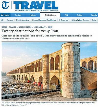 اینکه سایت یک روزنامه انگلیسی، ایران را در بین 20 مقصد گردشگری سال 2014 قرار می‌دهد، شاید اولین اتفاق خجسته‌ای نباشد که در ماه‌های اخیر پس از انتخابات 24خرداد ایران، در حوزه گردشگری شاهد آن هستیم، اما به زعم کارشناسان شاید یکی از مهم‌ترین آنها است. در همین گزارش آمده که «سفارت بریتانیا در تهران از سال 2011 تعطیل شده است و وزارت امور خارجه این کشور توصیه می‌کند که به جز سفرهای ضروری به ایران سفر نکنید! اما شایعاتی پیچیده است که این توصیه به زودی تغییر خواهد کرد.»