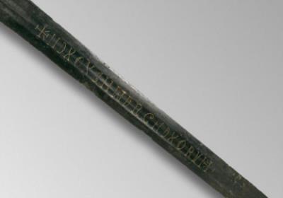 اما بر روی شمشیر کشف شده، نوشتهای کند کاری شده که محققان قادر به خواندن و رمزگشایی آن نیستند.
