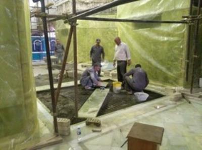 پس از طی این مراحل در استان خوزستان‌، درها برای انجام میناکاری‌، زرگری‌، نقره کاری و طلاکاری به کارگاه آفرینش‌های هنری ستاد بازسازی عتبات عالیات در اصفهان منتقل شد.