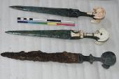 او افزود: «شیء سوم نیز خنجری است با دسته مفرغی و تیغه آهنی که به شدت هوازده و آسیب دیده بود.»