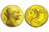 در بين سکه‌هاي به حراج گذاشته شده، سکه‌اي نقره‌اي متعلق به سال‌هاي 386 تا 375 پيش از ميلاد که يک سوي آن طرحي از يک شير بالدار با صورتي همچون عقاب بوده و سوي ديگر آن تصويري از آپولو با درخت بو و ظرفي در دست به همراه يک گوزه ديده مي‌شد قرار دارد.