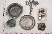 در اين کاوش وسايل روميزي چند صد سالهاي پيدا شد که شامل يک شمعدان و چند ظرف ميوه بود که در زير کف چوبي يک خانه قديمي پنهان شده بودند.