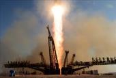 این مشعل توسط سه فضانورد روسی، امریکایی وایتالیایی در استپ های سرد قزاقستان فرود آمد.