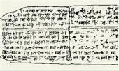 به گفته کارشناسان، زبانی که بر روی سنگ نوشته شده است نه یهودی است نه هندی اروپایی بلکه یک زبان مرده است و این قطعه یک سرود فرقه‌ای است که متعلق به 3400 سال پیش است.