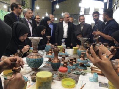 معاون رئیسجمهوری پس از ورود به اصفهان، از بزرگترین کارگاه تولید هنر سنتی فیروزه کوبی در دولت آباد بازدید کرد.