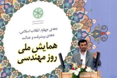 آقای احمدی نژاد دستاوردهای مهندسی ایران زمین را در طول تاریخ گنجینه ای افتخار آمیز برای بشر خواند و گفت : اگر بخواهیم ایران اسلامی را آن گونه که شایسته است بسازیم، باید نگاهمان مهندسی سرشار از خلاقیت، ابتکار و اتکا به منابع و استعدادهای داخلی باشد.