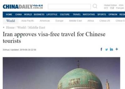 وبسایت دولتی china.org.cn هم با تیتر «ایران سفر بدون ویزا را برای توریستهای چینی را ممکن کرد» این خبر را منتشر کرد.