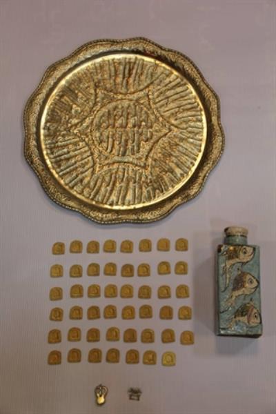 سرهنگ ابوالفضل مرادی فرمانده یگان حفاظت استان ادامه داد: «تعداد 51 قلم شئ تاریخی در حین معامله از قاچاقچیان اشیای تاریخی فرهنگی به دست آمد. این اشیا شامل یک سینی مسی، یک ظرف سفالی، دو عدد سگک کمربند و 47 قطعه پلاک طلا است که از میان آنها سینی، سگک کمربند و ظرف سفالی فاقد ارزش تاریخی فرهنگی شناخته شدند.»