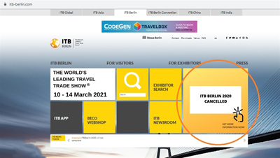 به خاطر شیوه سریع کروناویروس جدید (کویید 19)، وزارت سلامت فدرال و وزارت اقتصاد فدرال عنوان کردهاند که نمایشگاه ITB برلین لغو شود. عصر امروز مقام سلامت مسئول منطقه شارلوتنبورگ-ویلمرسدورف در برلین محدودیتهای بسیار سختگیرانهتری برای برگزاری این رویداد اعمال کرد. به گفته این مقام، یکی از پیش نیازهای اصلی این است که هر شرکتکننده باید به مرکز نمایشگاهی برلین ثابت کند که از منطقه دارای ریسک کرونا نیامده است یا با شخص یا اشخاصی که از یک منطقه دارای ریسک آمدهاند، تماس نداشته است. البته برآورده کردن این نیازمندیها برای مرکز نمایشگاهی برلین امکانپذیر نیست.