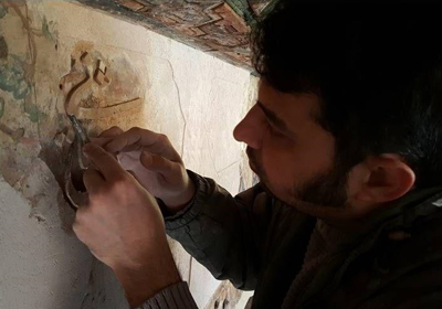 او افزود: «این عملیات مرمتی شامل: پاکسازی فیزیکی، پاکسازی شیمیایی، پوسته چسبانی تزیینات طلا چسبان، لایه چینی و رنگ و همچنین تزریق لایههای تزیینی پوسته شده بخشهایی از تزیینات که از محل اصلی خود جداشده بودند، هست.»