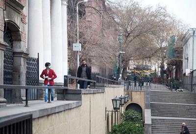 کافهها خالی از سکنه شدهاند و رستورانها تعطیل هستند، تنها تعداد معدودی آدم با ماسکهای جراحی و دستکش به دست در خیابانهای سنگفرش شده و پیچدرپیچ تفلیس پرسه میزنند.