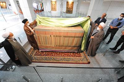 علی ضرابی معاون فضای مجازی سازمان کتابخانهها، موزهها و مرکز اسناد آستان قدس رضوی با اعلام این خبر گفت: «این بافته زربفت از جنس ابریشم و گلابتون مربوط به سال ۹۵۲ هجری قمری است که توسط میرنظام کاشانی بافته و حاجی اسوار لاهیجی آن را وقف بارگاه رضوی کرده است.»