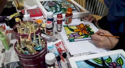 امیر ارجمند افزود: «نقاشی پشت شیشه شامل انتخاب یا رسم طرح اولیه، انتخاب المان شیشهای با توجه به مقصود نهایی، جنس و بافت آن، انتخاب رنگها، پیادهسازی طرح اولیه بر روی شیشه، رنگآمیزی و ... است.»