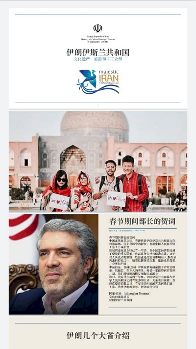 به گزارش سفرنیوز،مدیرکل بازاریابی و تبلیغات گردشگری اعلام کرد: «بهمنظور حضور مستمر و مؤثر در بازار گردشگری چین و همچنین زنده نگهداشتن نام ایران در حافظه بازار بزرگ این کشور با بیش از ۱۷۰میلیون گردشگر خروجی برای دوران پساکرونا، معاونت گردشگری در حال برگزاری کمپین "قرنها دوستی، سومین عید بهاره چینیها در ایران" در بازه زمانی ۲۴ بهمن الی ۹ اسفند سال جاری همزمان با عید بهاره چینی بهصورت مجازی است.»