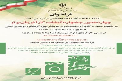 فلاح ادامه داد: «بر اساس برنامهریزیهای انجامشده زمان ثبت نام کارآفرینان از ۱ الی ۱۰ تیر ماه جاری تعیین شده بود که تا ۱۰ مرداد ۱۴۰۰ تمدید شده و کارآفرینان میتوانند با مراجعه به وبسایت KARAFARINANEBARTAR.IR یا KARAFARINANEBARTAR.MCLS.GOV.IR فرآیند ثبتنام در این جشنواره را تکمیل کنند.»