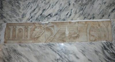 قدمت این تکه مرمر باریک، که روی آن حکاکیهایی وجود دارد، به حوالی ۶۲ میلادی بازمیگردد و روی آن صحنهای از زمینلرزهای به تصویر کشیده شده که در همان سال رخ داده است. نکته قابل توجه درباره نقشهای روی این مرمر، نمایش فروریختن دروازههای «پمپئی» است.