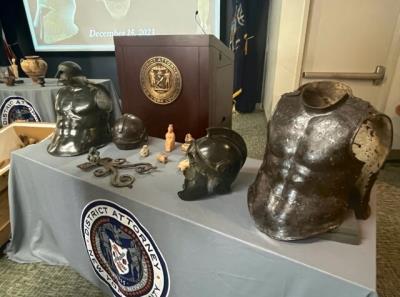 این مجموعه آثار تاریخی، که از میان آنها به یک زره، یک بشقاب نقره بیزانسی و بخشی از یک ارابه برنز میتوان اشاره کرد، توسط ماموران امنیت داخلی، بازوی تحقیقاتی وزارت امنیت داخلی ایالات متحده و با همکاری دفتر دادستان منطقه منهتن کشف شدند.