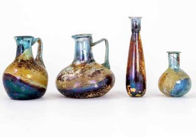 این ظرفهای شیشه بسیار سالم از جمله قابلتوجهترین اشیائی به شمار میروند که در جریان کاوش اخیر در «نیم» کشف شدهاند. یافتن چنین ظروف شیشهای زیبا و سالمی به ندرت اتفاق میافتد، اما آنچه درباره این شیشهها واقعاً خیرهکننده است رنگهای آبی و طلایی خود شیشه است که باعث میشود این اشیاء به زیبایی باورنکردنی بدرخشند.