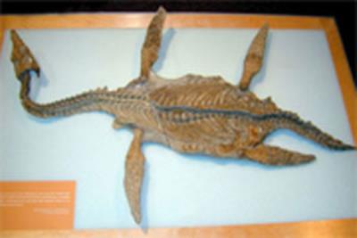 يکي از اين اسکلتها به خاطر جثه فوق العاده غول آساي آن «هيولا» لقب گرفته است. اين جانوران در يک درياي سرد و عميق مي زيستند و سلطان درياها در دوره خود محسوب مي شدند.