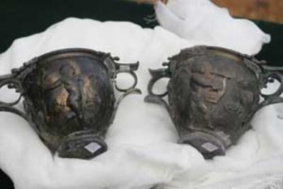آثار ديگري نيز همچون دو جام نقرهاي با تصاويري از اروس(Eros) خداي محبت و تعدادي گلدان نقرهاي و برنزي تزيين شده، بخش ديگر اين نمايشگاه را تشکيل مي دهند.