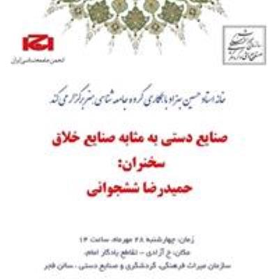 در این نشست حمید رضا ششجوانی¬ عضو انجمن بینالمللی اقتصاد فرهنگ ACEI به رابطه بین صنایع دستی و بازار جهانی صادرات اقتصاد خلاق خواهند پرداخت و به این وسیله تلاش می شود تا وضعیت صادرات صنایع دستی در دوره پسابرجام از منظر اقتصاد فرهنگ تبیین شود.