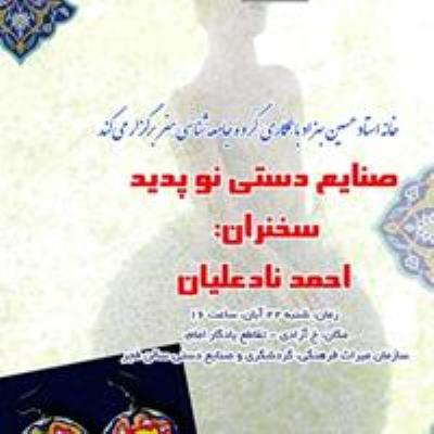 این نشست که با حضور و سخنرانی دکتر احمد نادعلیان و جمعی از هنرمندان ، دانشجویان و علاقمندان به هنر و صنایع دستی برگزار می شود علاوه بر یک مقدمه کلی در حوزه صنایع دستی، تجربیات هنرمندان در خصوص ایجاد صنایع دستی نوپدید را نیزبیان می کند همچنین پس از تبیین کلید واژه ها و پرداختن به تعامل بین هنر فردی و هنر جمعی، صنایع دستی نوپدید نیزتعریف و جایگاه آن با توجه به سنت تاریخی صنایع دستی تشریح می شود.