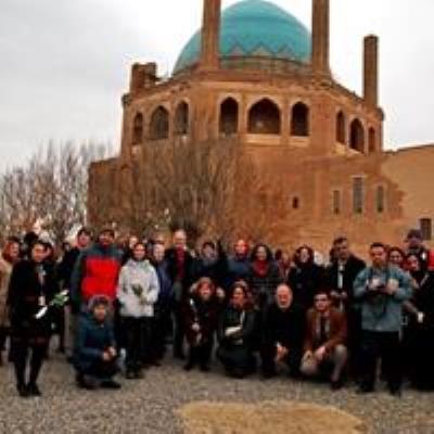 دهها راهنمای جهانی گردشگری در گنبد سلطانیه گردهم میآیند و با اشتیاق خاصی به توضیحات راهنما گوش میدهند.