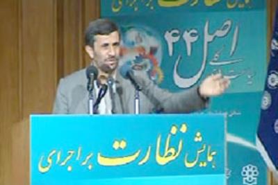 آقای احمدی نژاد در جمع صدها نفر از صاحبنظران، کارشناسان و مسئولان قوای اجرایی، قضایی و مقننه در همایش نظارت بر اجرای سیاست های کلی اصل 44 قانون اساسی با اشاره به زیان ها و مشکلات ناشی از اقتصاد دولتی و اقتصاد کاملا آزاد، هر دو نوع اقتصاد را بر خلاف عدالت و زمینه ساز تبعیض، سوء استفاده و اتلاف منابع خواند.
