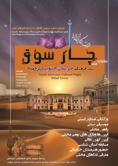 او ضمن بیان اینکه هنرمندان صنایع دستی خراسانجنوبی نیز در راستای شب فرهنگی خراسانجنوبی در برج میلاد هنرنمایی میکنند، افزود: «مریم اسماعیلی بانوی هنرمند در رشته سنتی پخل بافی و منصور خراشادیزاده که در رشته نساجی سنتی استان فعال هستند، بخشی از میراث دیار خاوران را بصورت زنده معرفی میکنند.»