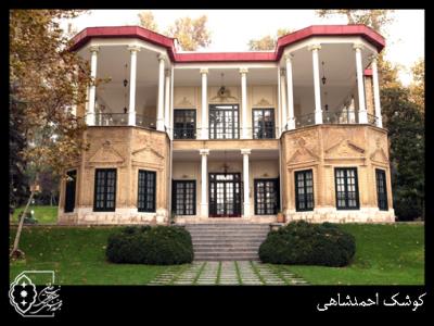 عمارت کوشک احمدشاهی اواخر دوره قاجار برای خوابگاه ییلاقی احمدشاه در میان باغ نیاوران با مساحتی بالغ بر 800 مترمربع در دو طبقه با سقف شیروانی بنا شد.