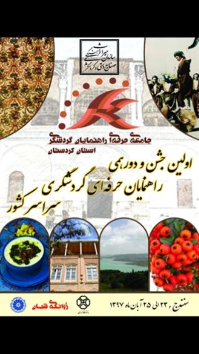 اولین جشنواره و گردهمکایی راهنمایان حرفه ای گردشگری سراسر کشور به میزبانی سنندج با هدف معرفی پتانسیل های گردشگری کردستان و بررسی راهکارهای توسعه و شناسایی ظرفیت ها در زمینه گردشگری برگزار خواهد شد.