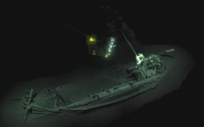 کشتی با طولی به درازای 75 فوت (حدود 23 متر) که تقریبا تماما سالم مانده است در اعماق 1.2 مایلی (2000 متری) سطح دریای سیاه کشف شد. محققان بر این باورند که این کشتی از 2400 سال پیش در این محل غرق شده است.
